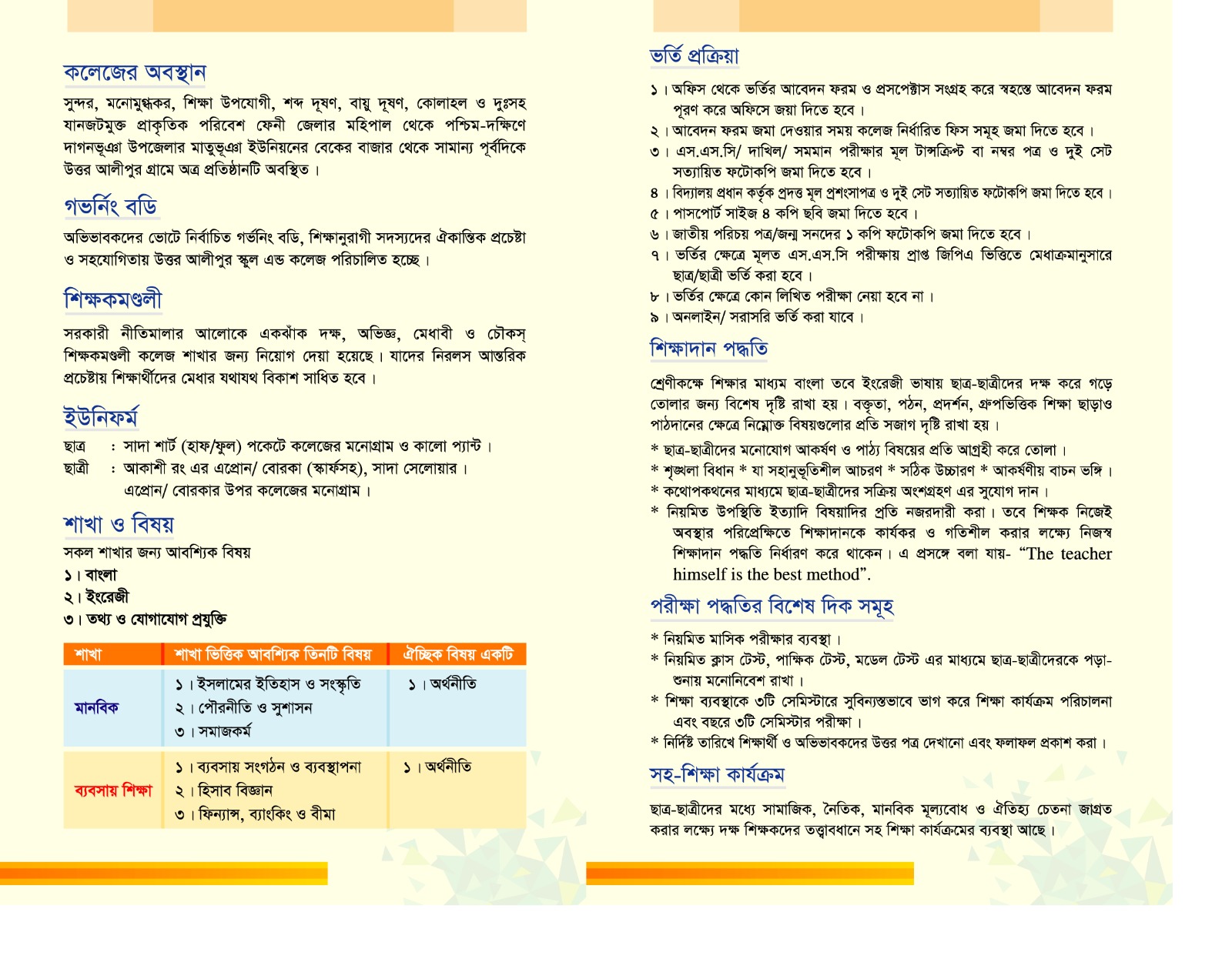 ভর্তির নিয়মাবলী